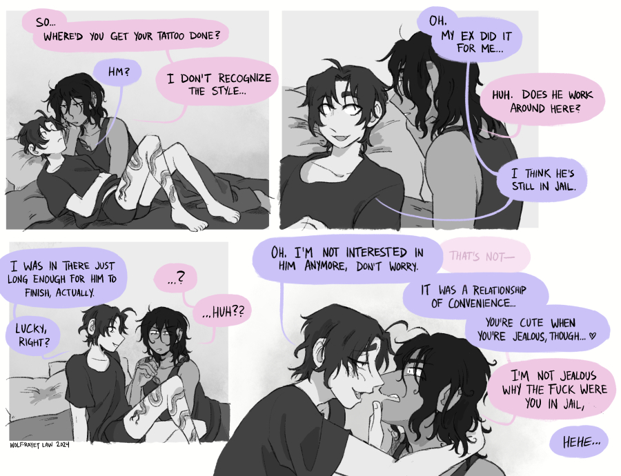 Just the sea snake tattoo on his leg that he got in jail. He's not opposed to getting more, though, like at an actual parlor this time lol